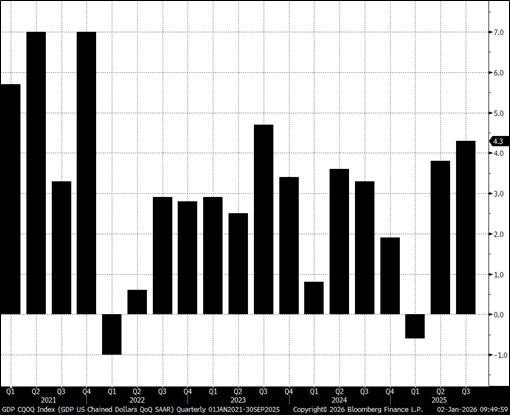 We continued to receive sporadic economic data releases in December as multiple federal agencies struggled to resume their regular schedule of updates following the conclusion of the federal government shutdown earlier in the fall. The updates that we did receive largely showed signs of continued economic growth.